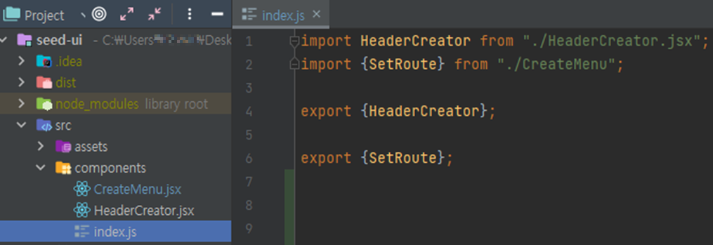 2. 대표 파일(index.js)을 생성하고 해당 파일 내에서 import 후 export