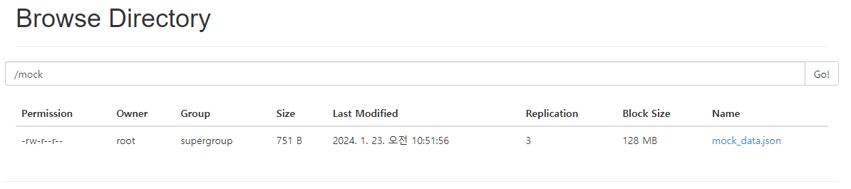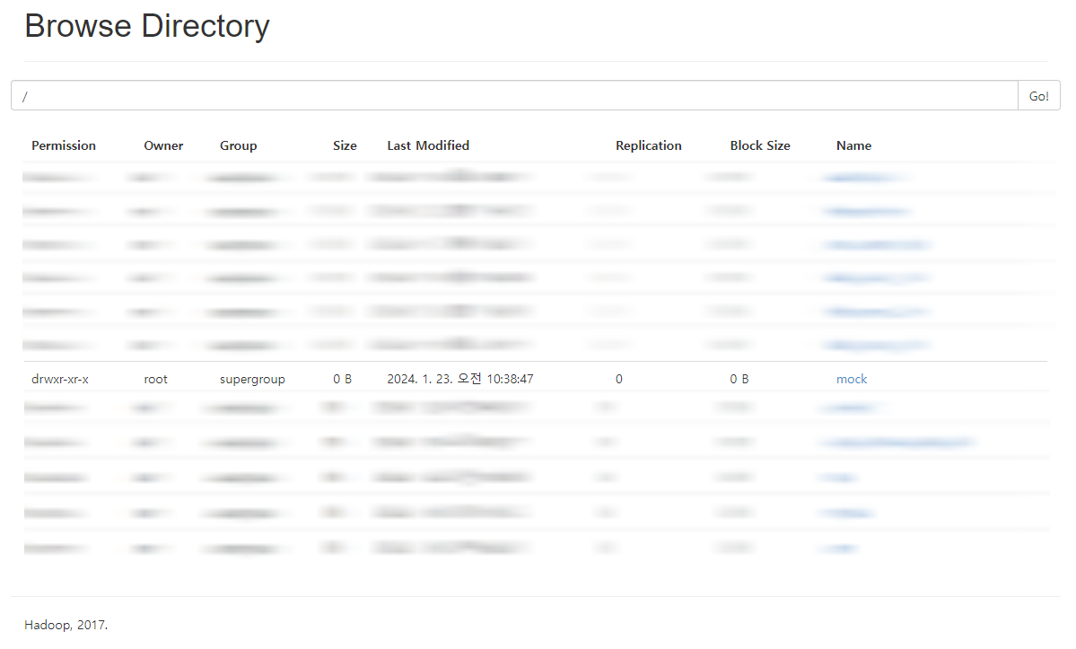 # hdfs dfs -mkdir /[ํด๋๋ช