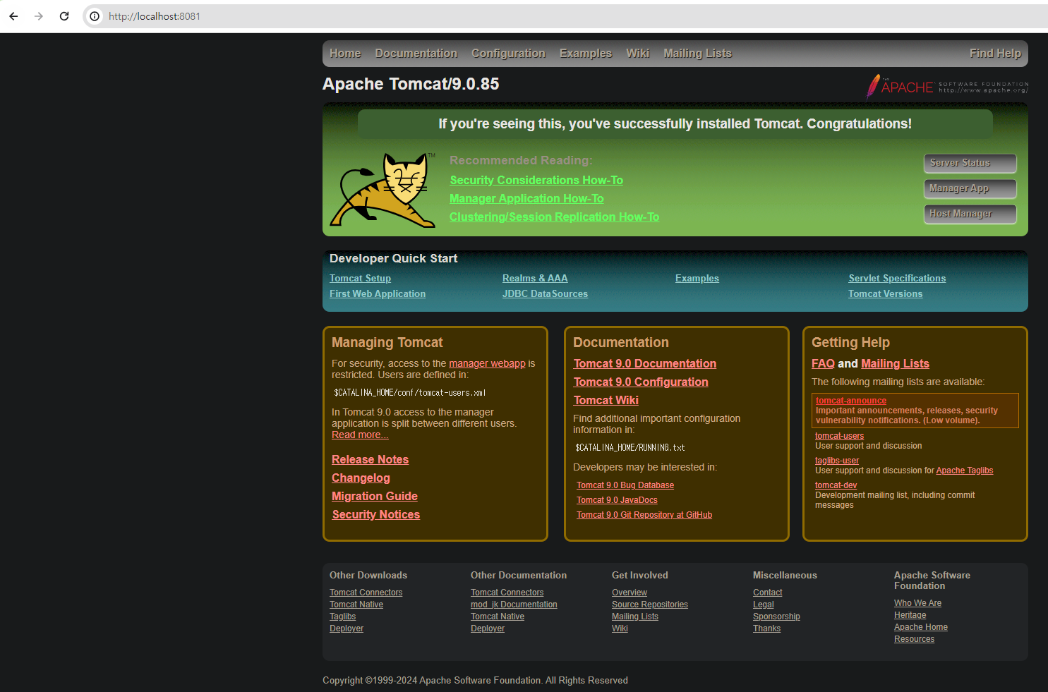 $ wget <http://apache.mirror.cdnetworks.com/tomcat/tomcat-9/v9.0.85/bin/apache-tomcat-9.0.85.tar.gz>