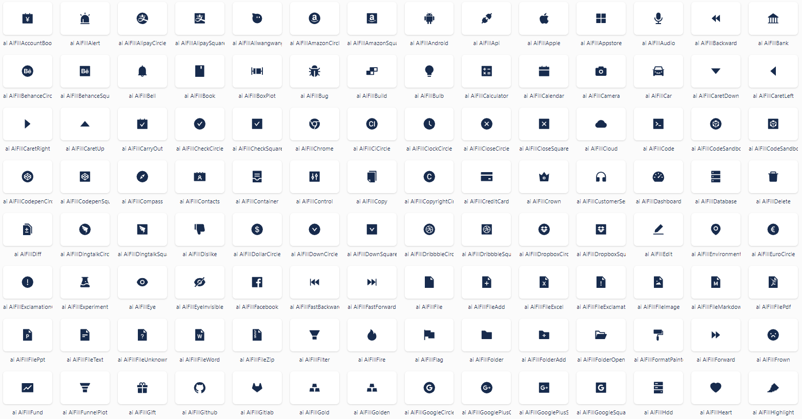 보통 앞 2, 3글자의 구분자를 폴더 이름으로 사용하거나 react-icons 페이지에 아이콘 이름 앞에 명시되어 있으니 참고하면 된다.